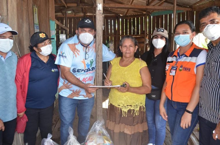 O Prefeito de Tefé, Nicson Marreira Lima (PTB), acompanhado do Vice-prefeito, Gilmar William Veloso – Preto Veloso (MDB), da primeira dama e Secretária de Assistência Social e Cidadania, Kelly Barbosa, e de representantes do Poder Legislativo, participou nesta sexta-feira, (21), da entrega de cestas básicas como ajuda humanitária às comunidades alagadas.
