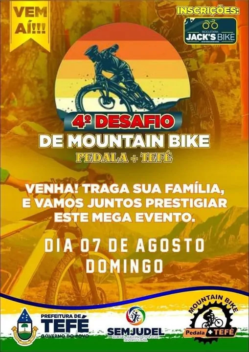 A Prefeitura Municipal de Tefé tem a honra de convidar todos os amantes do esporte na modalidade do Mountain Bike , para participar do do 4° Desafio de Mountain Bike.