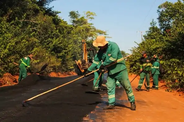 Agrovila de Tefé recebe primeira camada de asfalto em nova obra de infraestrutura