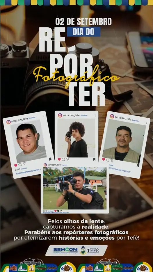 A Prefeitura parabeniza todos os repórteres fotográficos por sua incansável contribuição ao longo do tempo e reafirma o compromisso com a valorização dos profissionais que ajudam a contar a história de Tefé através de suas lentes.