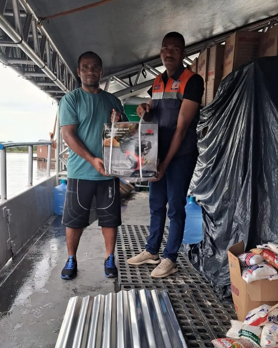 ✅ Neste momento, estão sendo entregues Cestas Básicas, Galões de Água, Motores de Rabeta, Motores Bomba, Roçadeiras, Alumínio, Fornos de Farinha e outros insumos essenciais.