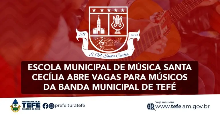 A Escola Municipal de Música Santa Cecília está com vagas abertas para músicos que desejam compor a banda municipal. A seleção abre vagas para músicos atuantes em flauta, clarinete, trombone, guitarra, baixo, prato, caixa, bumbo e bateria.