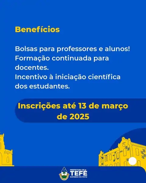 A Prefeitura de Tefé e a FAPEAM convidam os professores a participarem desta oportunidade, que contribui para a qualidade da educação e o desenvolvimento científico dos alunos.