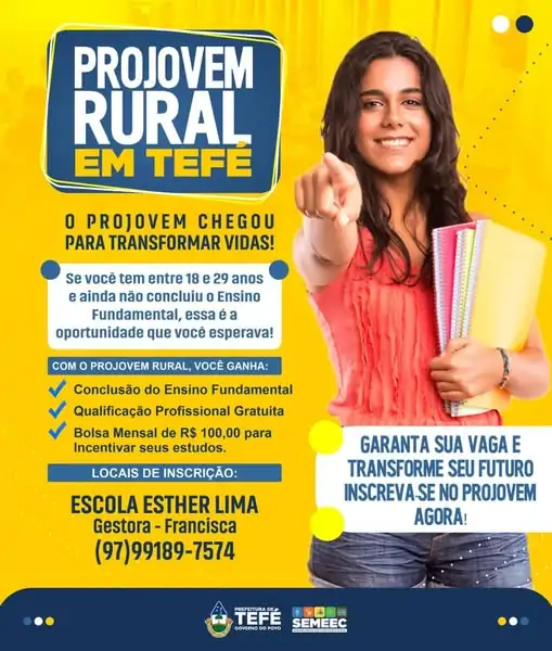 O Projovem Rural chegou a Tefé para oferecer oportunidades de educação e qualificação profissional para jovens de 18 a 29 anos que ainda não concluíram o Ensino Fundamental.