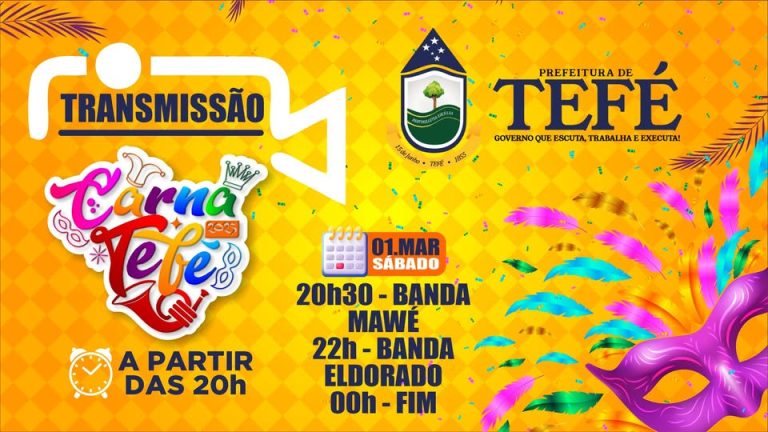 Fique ligado nas redes sociais da Prefeitura para não perder nenhum detalhe da programação e venha curtir o Carnaval Tefé 2025 com alegria e segurança.