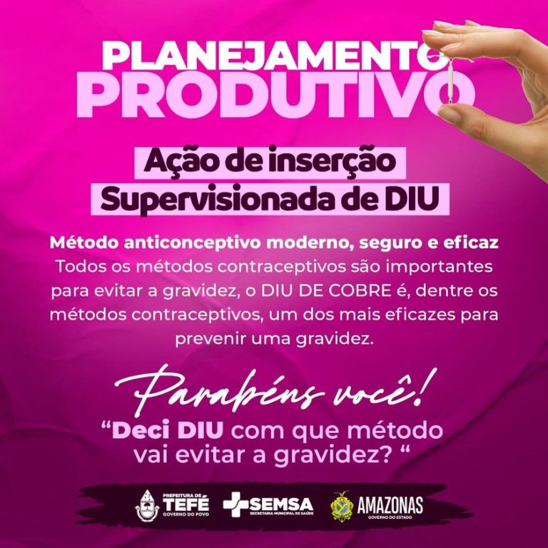 O planejamento familiar é um dos fatores determinantes para a construção de uma sociedade mais equilibrada já que pode contribuir com a diminuição da situação de vulnerabilidade social e de miséria de uma população. Como forma de proporcionar mais alternativas relacionadas à questão de prevenção à gravidez indesejada, a prefeitura de Tefé, por meio da Secretaria Municipal de Saúde (SEMSA), em uma ação parceira com a Secretaria de Estado de Saúde do Amazonas (SES-AM), realizará no dia (06) de abril, um mutirão de atendimentos para a aplicação de 350 Dispositivos Intrauterinos (DIU), em mulheres de até 49 anos que tenham interesse no procedimento. O “DIU” é um dos mais seguros métodos contraceptivos e é capaz de prevenir a gravidez não planejada, melhorando inclusive a qualidade de vida e fornecendo uma alternativa de planejamento familiar para a sociedade.